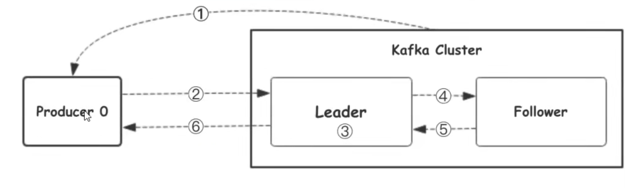 - leader收到所有的follower的ACK后向生产者发送ACK(回复确认)