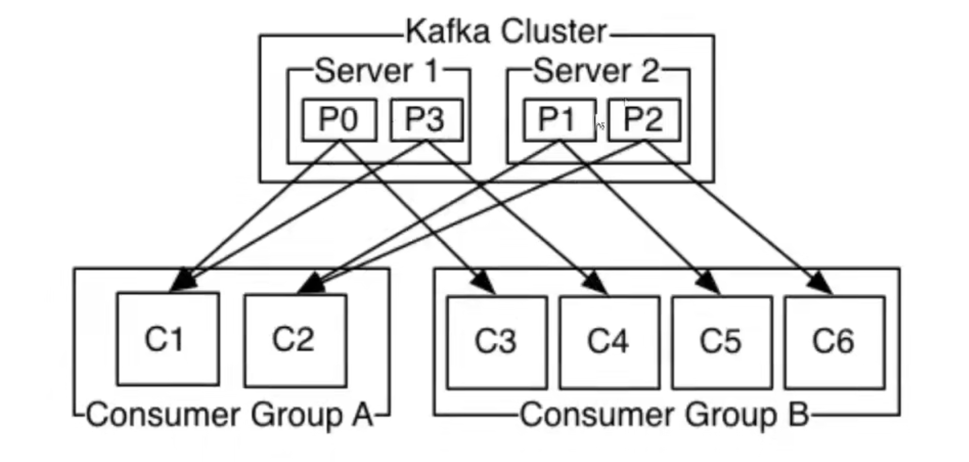 - 每个分区最多只能被消费者组中的一个实例消费;