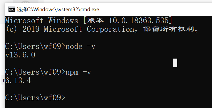 安装完毕后打开cmd输入node -v npm -v。如果显示版本号就说明安装完成了。
