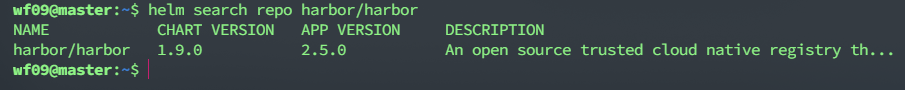 1 | helm search repo harbor/harbor |