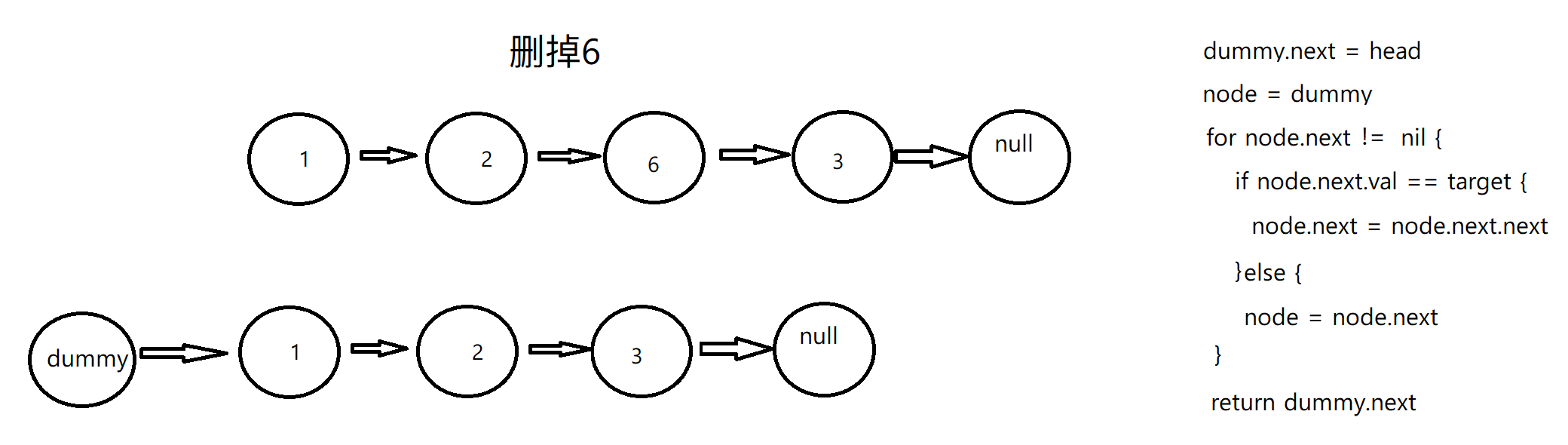 添加一个虚拟头节点,这样原链表的所有节点都可以按照统一的方式进行移除了。